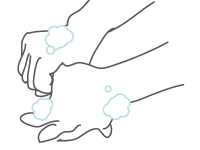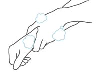 手の平を使ってしっかりと擦りこむように親指側からなじませます。